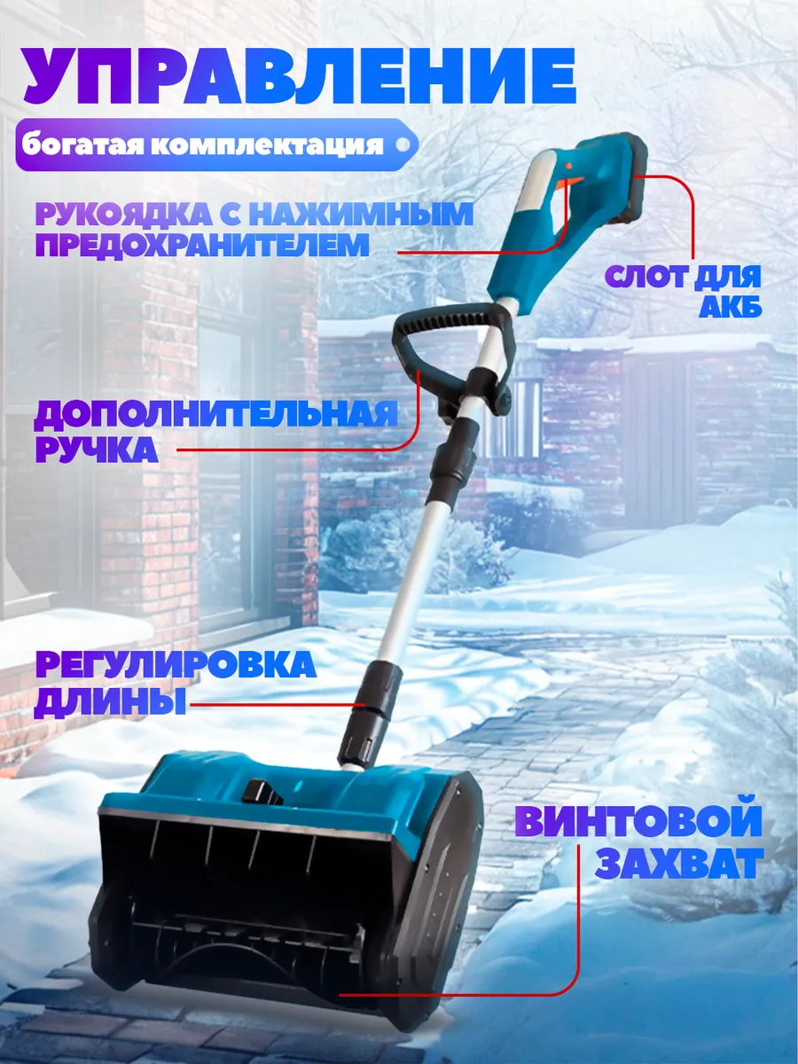 Снегоуборщик поставляется с зарядным устройством и инструкцией, что делает его готовым к использованию сразу после покупки. Больше не нужно тратить силы на ручную уборку снега - доверьте эту работу надежному аккумуляторному помощнику!